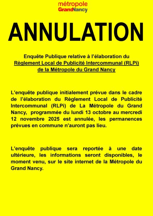 L’enquête publique initialement prévue dans le cadre de l’élaboration du Règlement Local de Publicité Intercommunal (RLPi) de La Métropole du Grand Nancy, programmée du lundi 13 octobre au…