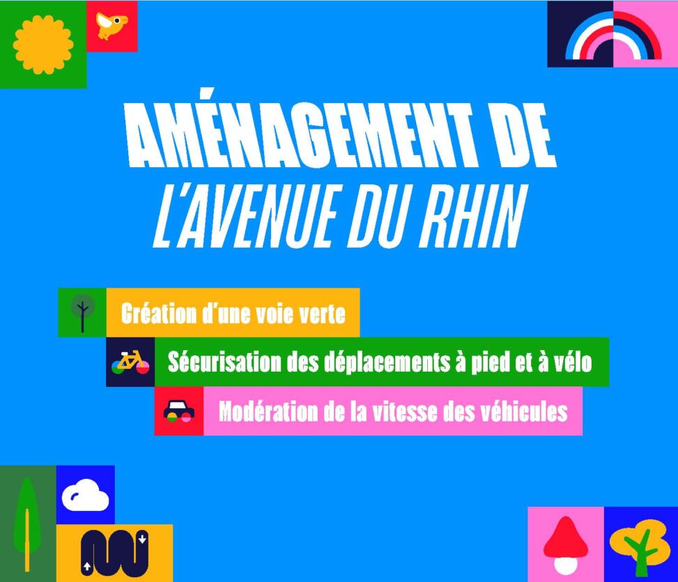 En ce sens, l’avenue du Rhin (M30) va bénéficier d’un nouvel aménagement incluant la création d’une voie verte, c’est-à-dire une voie sécurisée et réservée aux mobilités actives (à pied, à vélo, etc.). La chaussée dédiée aux véhicules motorisés sera, quant à elle davantage sécurisée.